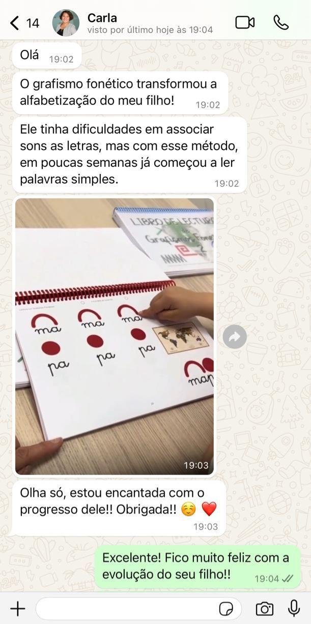 BÔNUS 1 – VÍDEO AULA: MANUAL PRÁTICOUm vídeo direto ao ponto, onde você aprende como o Grafismo Fonético funciona, como aplicar as atividades corretamente. Ideal para pais e professores que querem segurança e clareza na aplicação do método.